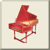 Einmanualiges Cembalo nach Andreas Ruckers, Antwerpen 1637, Länge 1,85m, Umfang der Klaviatur HH - e³, 2 x 8' + Lautenzug, Transponiereinrichtung um einen Halbton, Untertasten mit Ebenholzauflage, Obertasten Ebenholz mit Knochenauflage, Innengehäuse tapeziert,Fußgestell